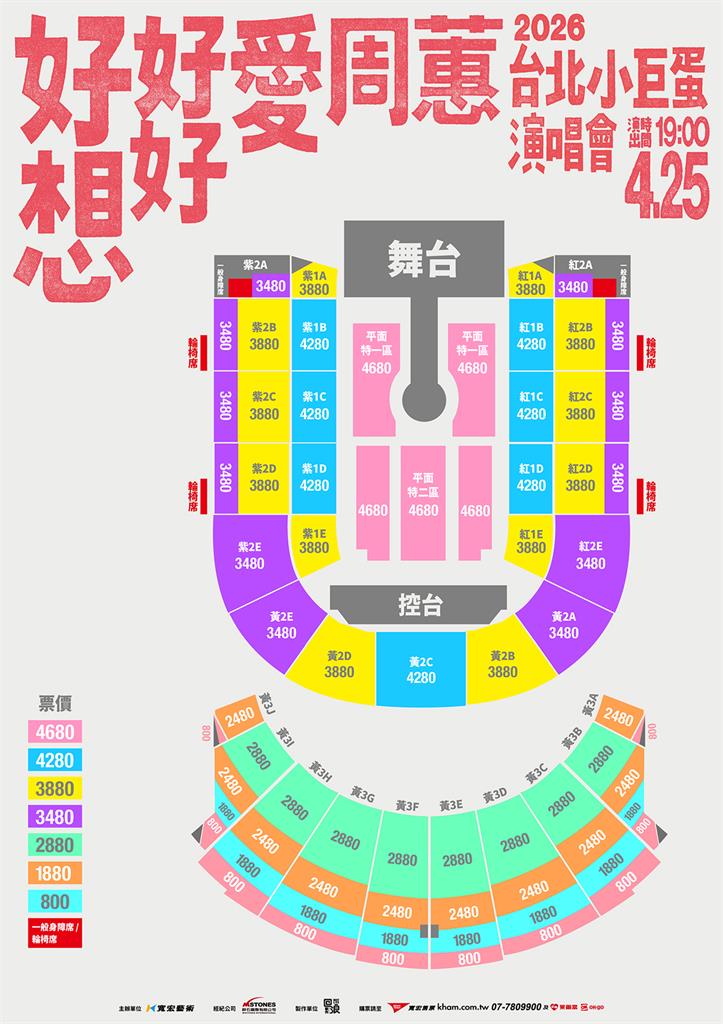 走過人生高低起伏的周蕙,感謝歌迷們一路以來的支持,將把自己的人生歷練注入歌曲裡,帶領歌迷一起聽歌療癒,而本次「好想好好愛周蕙」演唱會將於4月25日(六)晚上19點在台北小巨蛋登場,票價分別為4680元、4280元、3880元、3480元、2880元、2480元、1880元、800元,門票即將在1月22日(四)中午12點於寬宏售票平台正式啟售。