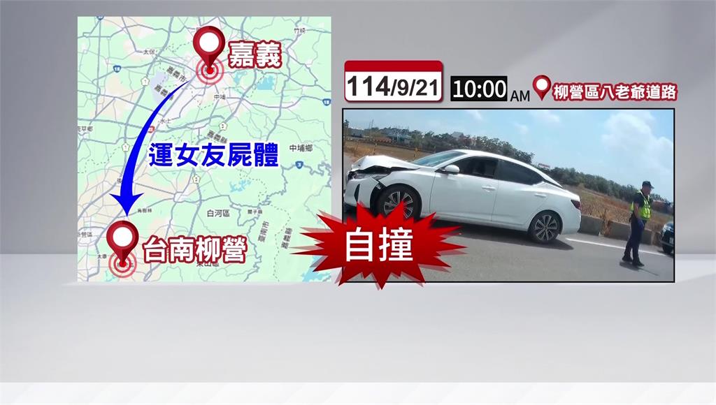 嫌犯開車伴屍31小時,從嘉義開到台南,最後自撞電線杆。圖/台視新聞據了解蔡姓男子的改造手槍和七顆子彈是在堂哥過世前,用十萬元和他買的,這回一槍斃命女友,失去愛情,也得為失去理智犯下的大錯付出應有代價。
