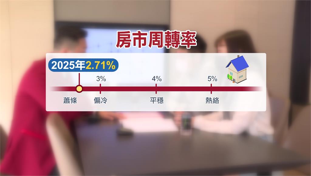 2025年的買氣創下史上最低,跌破代表「蕭條」市況的3%周轉率。圖/非凡新聞陳炳辰指出,對於部分剛性需求者而言,市場仍屬於「停、看、聽」的狀態,尤其從觀察來看,例如去年股市開紅盤,並未出現資金轉向房地產的情況,這顯示在信心面或實質層面,仍存在一定的干擾因素。