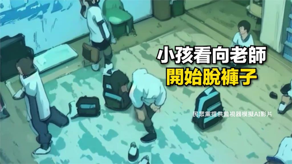 幼童在教室脫褲子擦水。圖/民眾黨提供監視器模擬AI影片