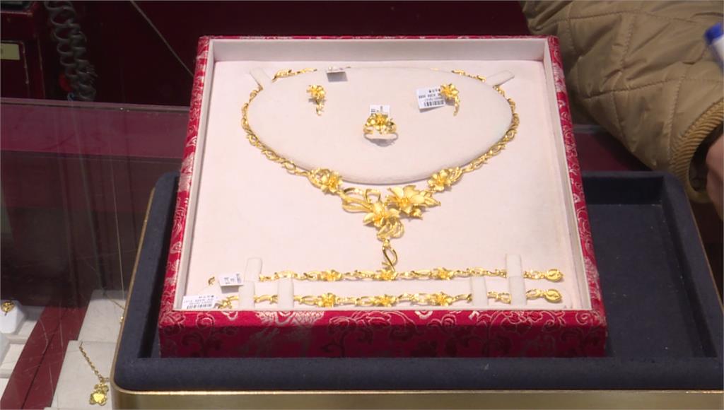 一套總重2兩的金飾與去年同期相比,價差大約17萬元。圖/非凡新聞國際金價創高,連帶讓黃金存摺衝破每克5千元,因為地緣政治風險升溫,投資人湧入黃金資產避險,也帶動相關ETF以及類股漲勢。與金價連動度高的佳龍,早盤觸及漲停價39.75元,終場收在38元,漲幅達5.12%,成交量超過萬張以上,成為盤面吸金指標;另外兩檔黃金ETF 期元大S&P黃金正2、期元大S&P黃金同樣吸引避險資金進駐,收盤漲幅分別來到7.14%以及3.58%,外資投行紛紛看好,在各國強勁需求下,有望支撐黃金成長動能。