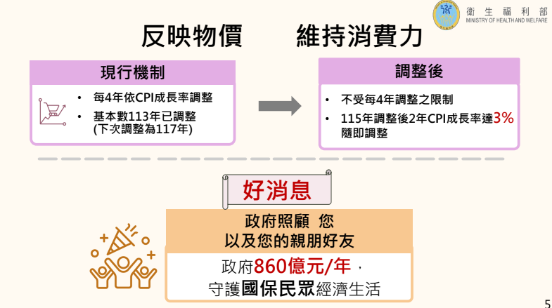 修法包括強化連動「消費者物價指數」(CPI)調整機制。圖/衛福部提供