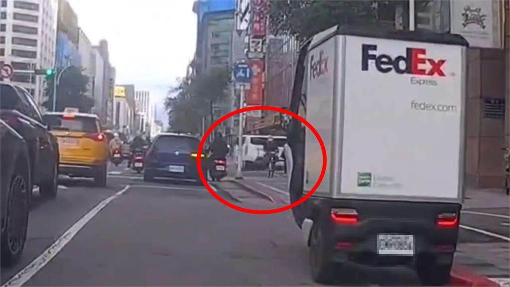 三立採訪車撞銀行畫面曝光。圖/翻攝自Threads@yihsuan_111