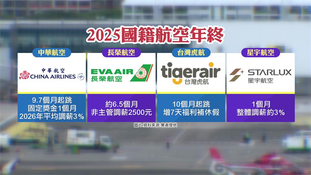 2025年出國旅遊人潮大爆發,航空業績火熱,年終表現也引人稱羨,華航平均9.7個月起跳,長榮航則將發放6.5個月,虎航更是上看10個月,星宇航空雖僅1個月,但也會進行調薪。不只航空業亮眼,民眾也看準科技產業前景,選擇在知名科技大廠擔任製程工程師。