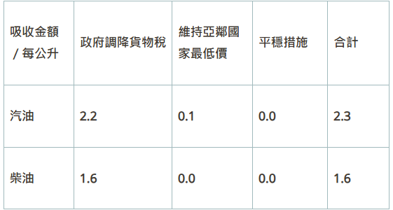 油價吸收金額表。圖/中油提供