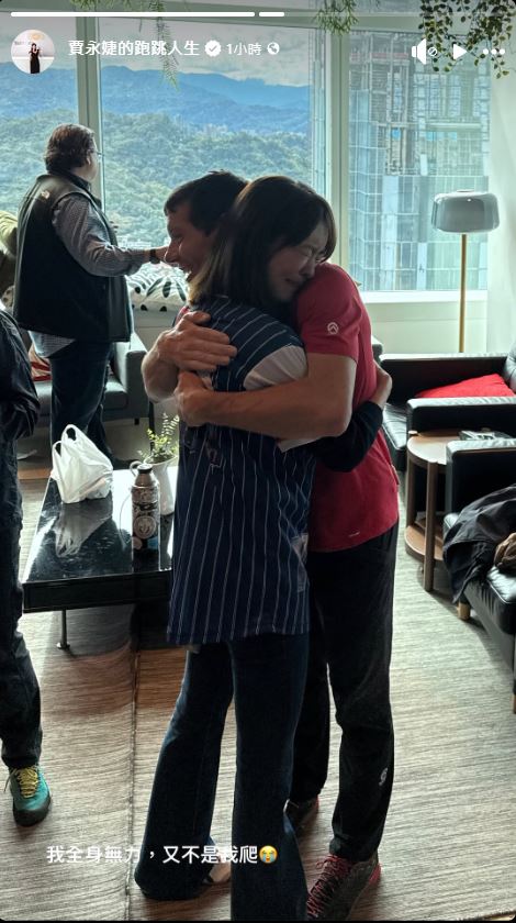 台北101董事長賈永婕全程關注霍諾德的攀爬直播,見到他成功登頂,她開心尖叫「YA!成功」,還說「我要退休了,緊張死了」。而賈永婕也PO出與霍諾德相擁合照,只見賈永婕疑似感動到落淚,配文寫上「我全身無力,又不是我爬」。