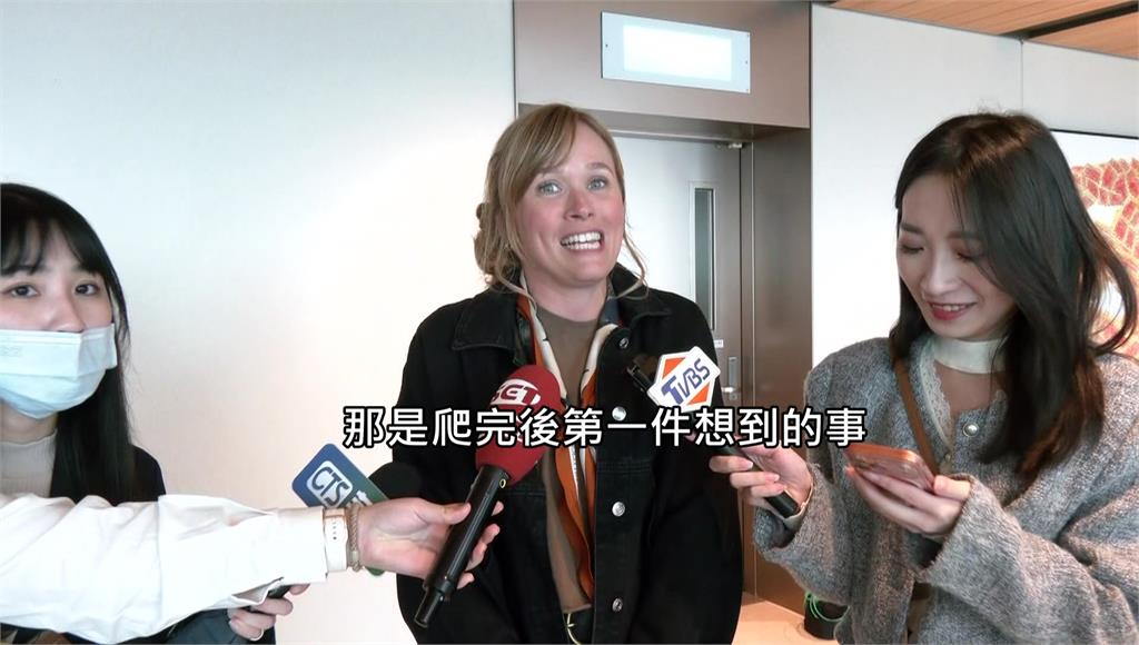 桑妮還透露,霍諾德完成挑戰後,第一件事就是來杯台灣特產的「珍珠奶茶」,「我們剛點了珍珠奶茶 ,那是我們爬完101之後想到的第一件事」,桑妮還指出,他們明天就要離開台灣,「我們已經在這裡待了大約一星期,這裡真的太棒了,我們玩得很開心」。