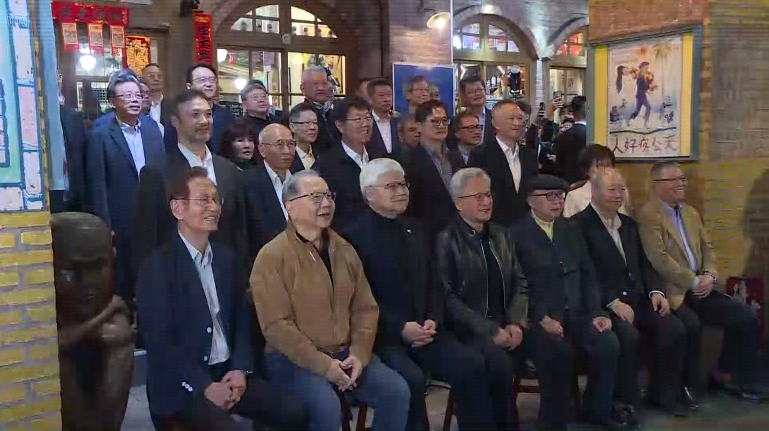 黃仁勳與各位科技大老們合照。圖/台視新聞出席這場兆元宴的其他科技大咖們還有光寶科技總經理邱森彬、仁寶董事長陳瑞聰、勝宏科技創辦人陳濤、鴻海董事長劉揚偉、緯穎董事長洪麗甯、台達電董事長鄭平、和碩董事長童子賢、和碩共同執行長鄭光志、和碩共同執行長鄧國彥、宏碁董事長陳俊聖、緯創總經理林建勳、華碩共同執行長胡書賓、矽品董事長蔡祺文、技嘉總經理林英宇、英業達總經理蔡枝安、英業達董事長葉力誠、微星董事長徐祥、工業富聯董事長鄭弘孟、研華總經理張家豪等人。