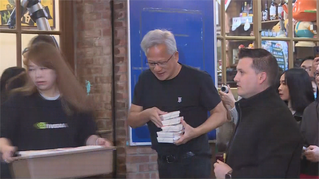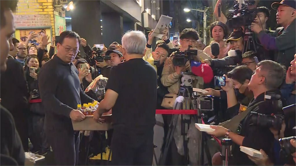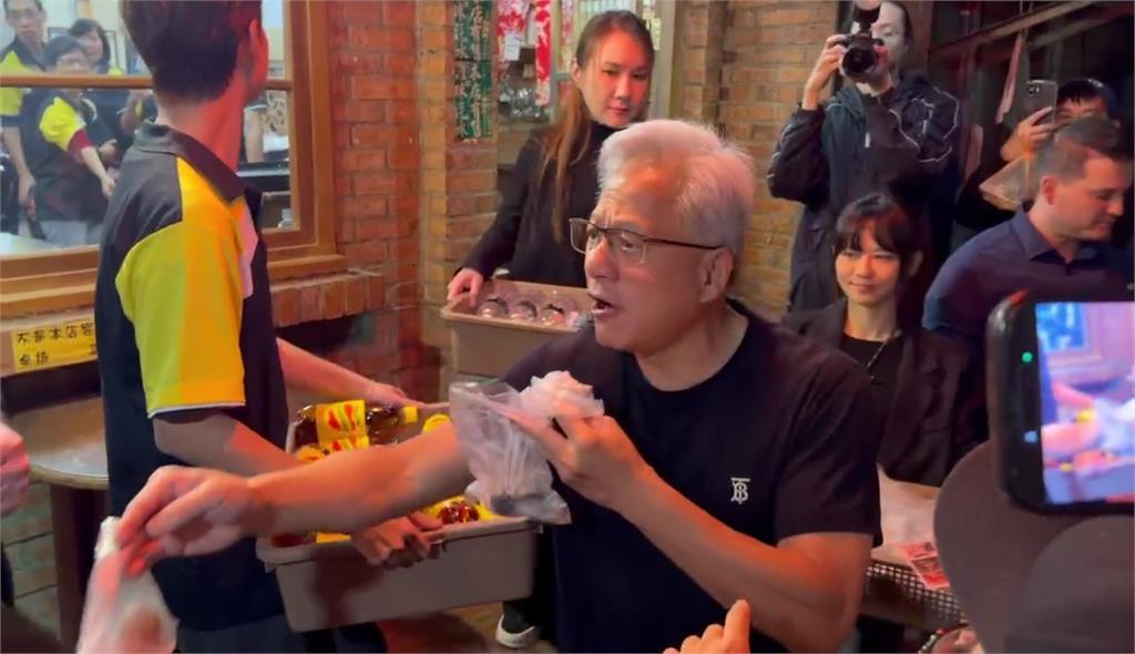 餐敘進行期間,黃仁勳特地走出餐廳,親自發放便當與飲料給現場粉絲,貼心舉動引來陣陣歡呼。