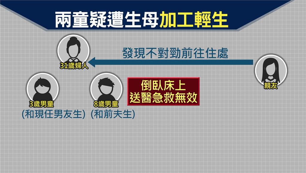 兩童疑遭生母加工輕生。圖/台視新聞製圖中山醫學大學附設醫院法醫科主任高大成指出,孩童因器官尚未成熟,服用(安眠藥)後可能致命,約3、4顆就可能出事。