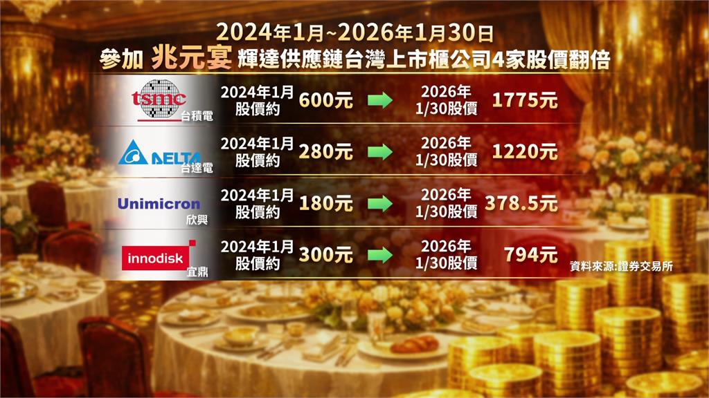 「兆元宴」供應鏈2年來股價狂漲 其中4家翻倍