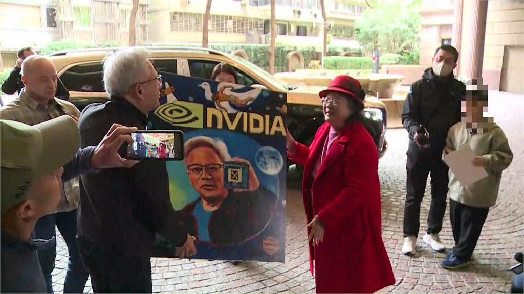 粉絲拿出畫有黃仁勳肖像的畫作。圖/台視新聞在後續行程方面,黃仁勳先前透露,今日有幾場會議要開,晚間將與台積電高層餐敘。黃仁勳近年來台,多會宴請供應鏈夥伴上演「兆元宴」,受邀名單每每引發熱議。