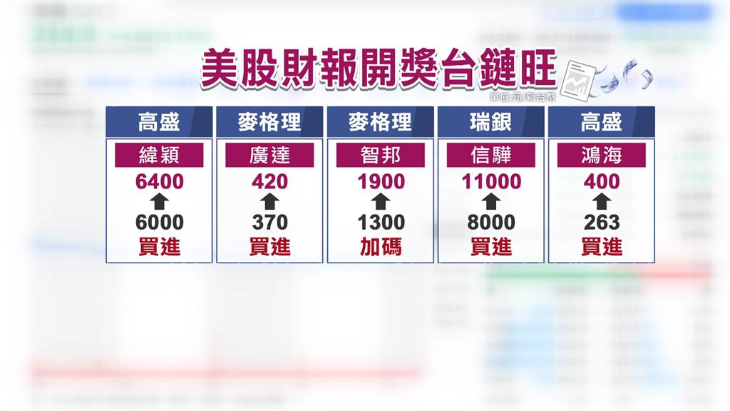 而信驊多家外資目標已經突破萬元水準,目前瑞銀最高11000元,鴻海上看400元的目標價則是來自高盛。