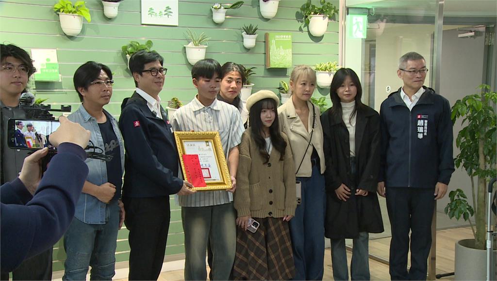 頒發獎狀,高雄市長陳其邁公開表揚簡姓男大生,因他在上個月底在惠民捷道人行道勇敢拯救老夫妻。當時老夫妻被清潔隊員逆向騎車撞擊,甚至動手暴打,他和女友路過阻止,沒想到清潔隊員惱羞成怒,拿安全帽攻擊他。為了制止,簡姓男大生將人壓制在地,女友也來幫忙,不過他也因而受傷。