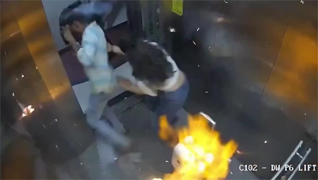 恐怖烈焰籠罩電梯! 3人慘遭火吻驚嚇逃出