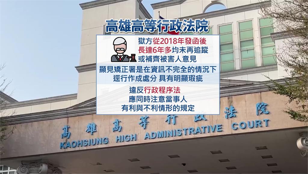 高雄高等行政法院日前審理認為,矯正署在審查過程中引用2018年的舊資料,未再追蹤或補充被害人意見,也未充分審酌有利事證,程序上確有缺失,因此判決撤銷不予假釋處分及復審裁定,要求重新審議。對此,法務部矯正署台南監獄表示,假釋相關作業均由上級機關依法辦理。