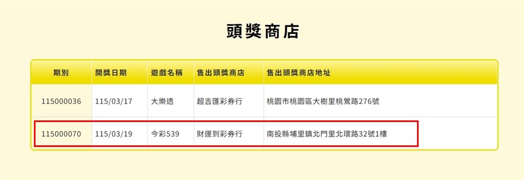 本期開出頭獎彩券行。圖/台彩03/19完整獎項獎號如下: