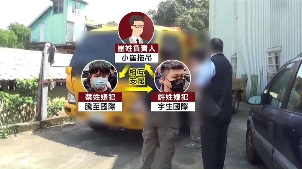 三家黑心公司互相支援人力車輛。圖/台視新聞其中主嫌小崔原本出境到泰國,19號凌晨返台立刻被拘捕到案。他辯稱,蔡姓和許姓兩名業者原本都是他的員工,發現兩人會私下向顧客收取高額拖吊費,才把他們趕出公司,否認跟自己有關。