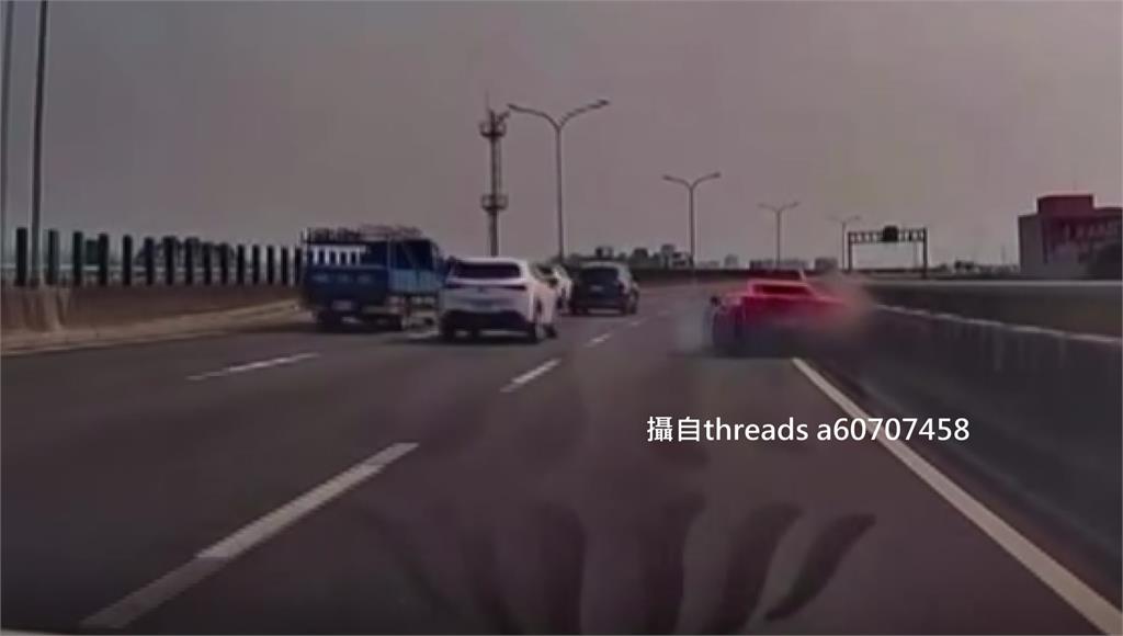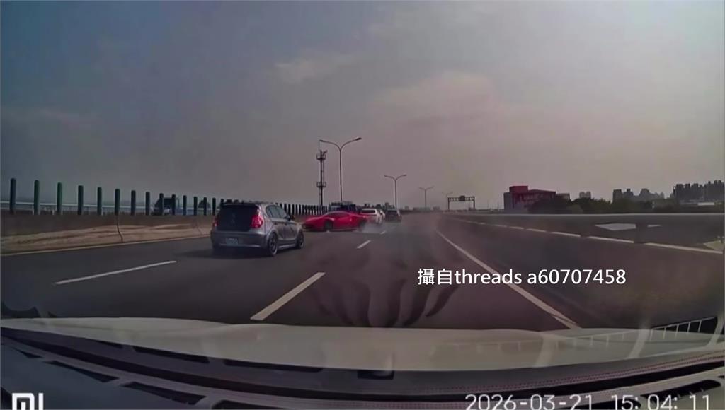 台中74線快速道路霧峰路段,出現驚險畫面。一輛紅色法拉利疑似變換車道不當,整輛車猛力撞擊護欄,還上演180度大甩尾,帥氣度瞬間歸零,讓網友全笑翻。