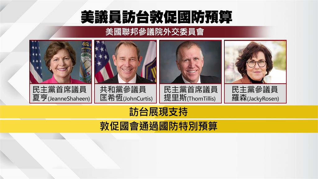 根據《金融時報》報導,美國參議院外交委員會跨黨派議員將組團訪台,成員包括民主黨首席議員夏亨、參議員羅森,以及共和黨參議員匡希恆與提里斯。訪團預計30日晉見總統賴清德,並在總統府內公開發表談話,也將與在野陣營會面,說明台灣通過國防預算的重要性。總統府對此低調表示,若訪團行程有確定安排,將再進一步說明。