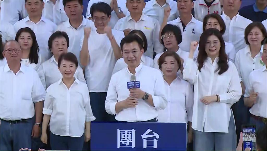 鄭麗文、盧秀燕、楊瓊瓔皆到場力挺江啟臣。圖/台視新聞至於民進黨這邊,參選人綠委何欣純說她早已起跑,節奏早就快了好幾倍。選戰剩下不到八個月,時間緊迫,外界認為盧秀燕若志在2028總統大選,「台中絕不能丟」,盧秀燕火速集結台中隊,宣告選戰開打。