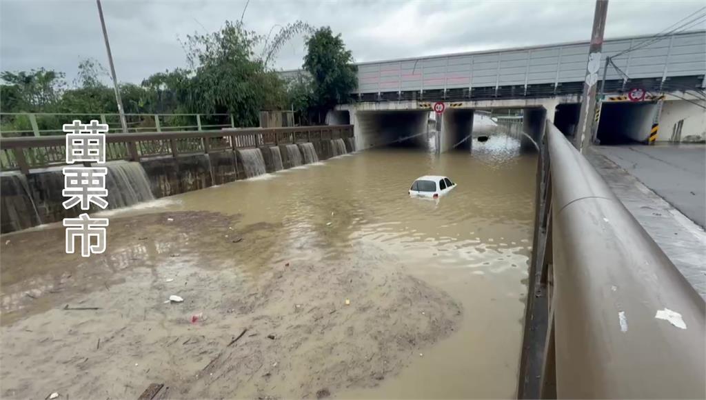 苗栗市通往公館方向地下隧道嚴重淹水,2車受困泡水。圖/台視新聞