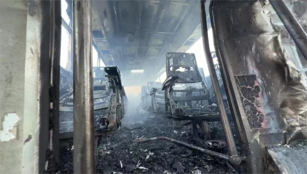 客運燒到幾乎只剩骨架。圖/台視新聞責任編輯/陳俊宇