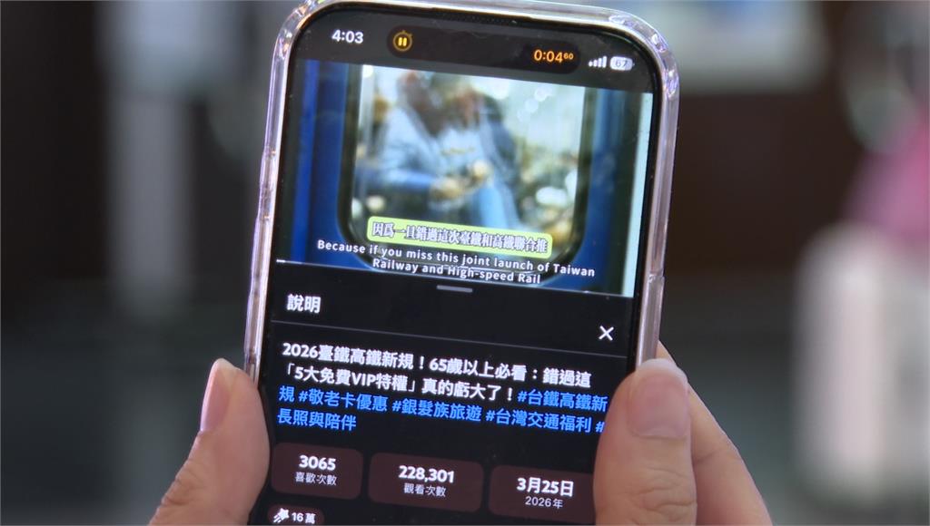 網上流傳的相關影片標題都提到「2026台鐵高鐵新規」、「65歲以上必看」、「新政策」等,內容指出長者搭雙鐵可以免費升等、同行者能免費搭乘、遇到假期搭高鐵有1500元補貼、敬老卡點數無限額度、銀髮免費貴賓室、綠色通道等措施。