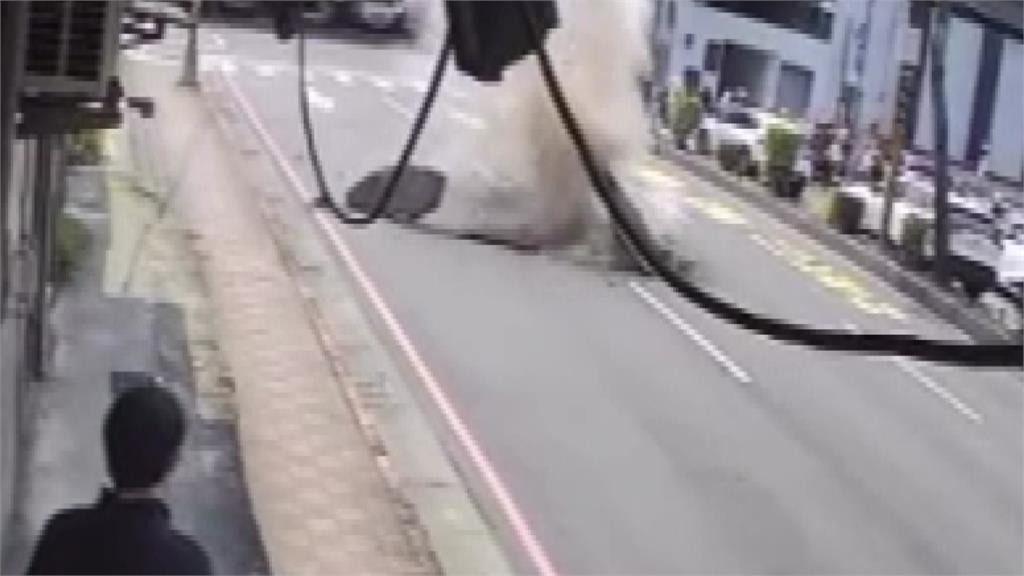 路面突爆炸噴出煙塵。圖/台視新聞除了員警緊急到場交管,相關單位也進行路面搶修,事故當下還一度造成4千多戶瞬間停電。