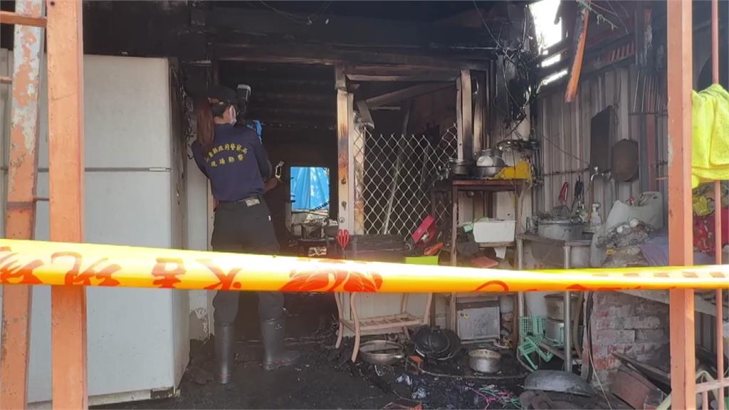 事發現場燒得一片焦黑,詳細起火原因以及財物損失還得進行火調。圖/台視新聞屏東/蘇世偉、陳淳禎、王秀成 責任編輯/王怡晴