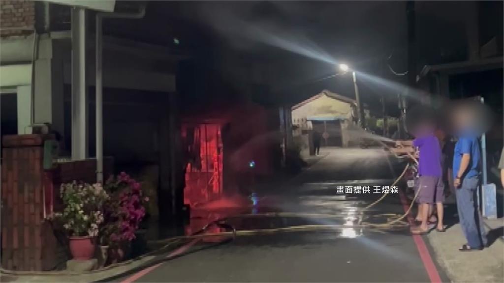民眾發現後第一時間拉水管往起火點滅火。圖/王煜森 畫面提供火勢猛烈,民眾第一時間拉水管往起火點滅火。但火越燒越大,濃煙不斷往上竄,平房幾乎全面燃燒,警消獲報也火速到場佈水線灌救,隨後進到屋內搶時間救人。