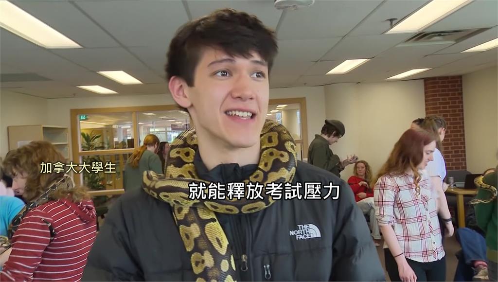 紓壓方式因人而異,千奇百怪的方式都有,加拿大一所大學推出讓學生摸蛇、抱蛇的紓壓活動,吸引不少學生嘗試。雖然還是有學生克服不了心中恐懼,但他們表示,害怕也是一種轉移注意力的方法。