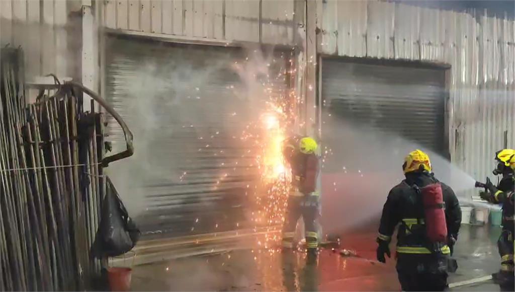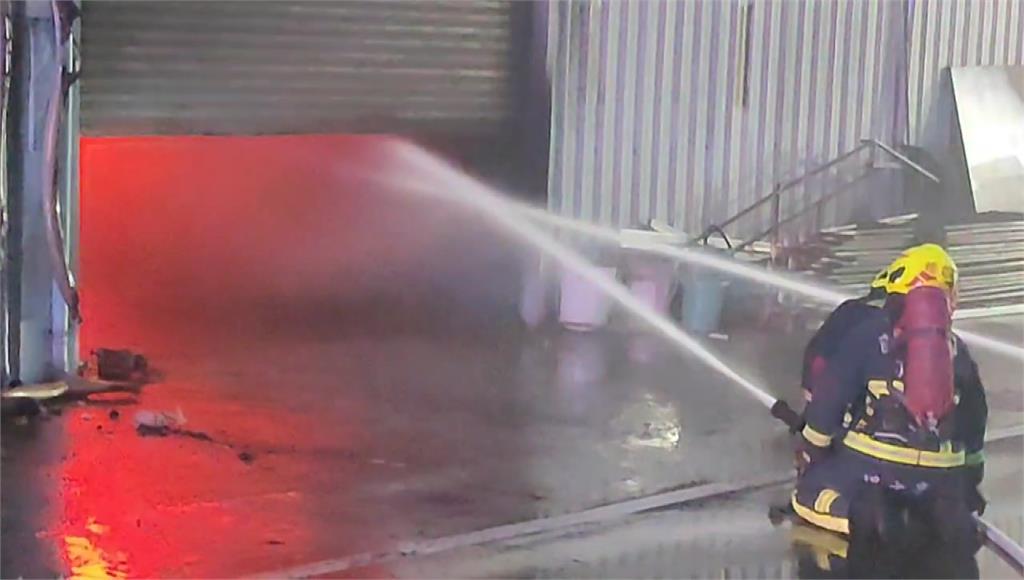 苗栗竹南禮儀公司陷火海。圖/台視新聞 苗栗縣竹南鎮一家禮儀公司今(19)日傍晚傳出火警,現場可見堆放大量易燃物,火舌在屋內迅速悶燒,情況一度緊急,消防人員獲報後火速趕抵現場,破壞鐵捲門進入搶救,並立即佈設水線灌救。消防破壞鐵捲門救火。圖/台視新聞初步估計燃燒面積約200平方公尺,所幸現場無人員受困或受傷,目前火勢已獲得控制,詳細起火原因仍有待進一步調查釐清。消防人員火速到場控制火勢。圖/台視新聞責任編輯/蔡尚晉