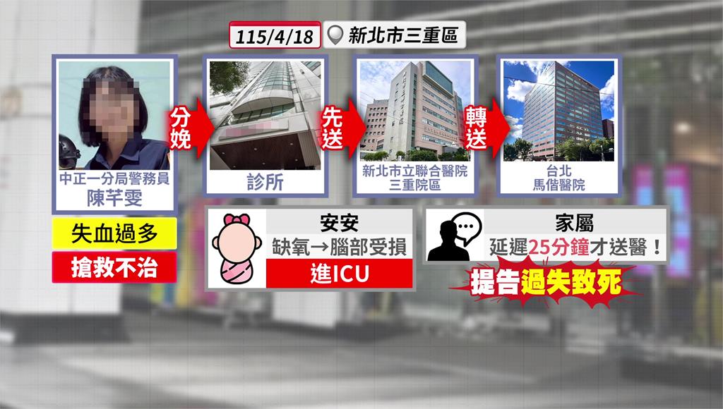 陳芊雯2度轉院搶救仍不治,家屬痛批診所延遲25分鐘才送醫。圖/台視新聞人生才剛開始,卻沒了媽媽,家屬無法接受喜事變喪事,痛批診所延遲25分鐘才送醫,對診所提告過失致死。診所則發出聲明,陳芊雯產後陷入意識不清,醫師當下立即展開急救,並聯絡救護車就近送新北市立聯合醫院三重院區緊急救治,後再轉送台北馬偕醫院急救。最後很扼腕還是沒能救回陳芊雯,診所也深感遺憾與不捨,相關單位已經介入調查,診所也會全力配合調查釐清真相。