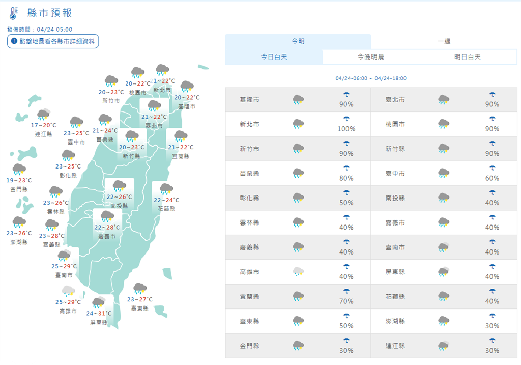 4/23-4/23降雨趨勢圖。圖/中央氣象署提供
